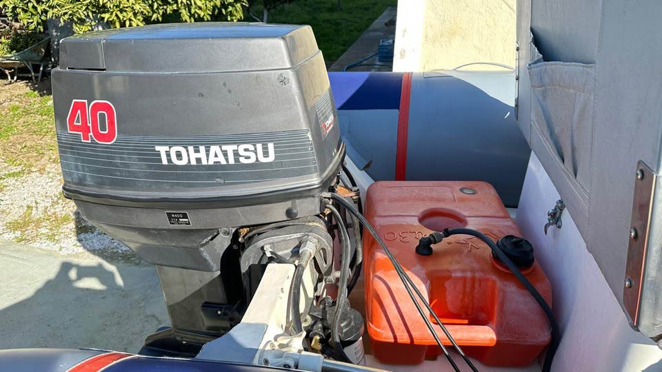 Με μηχανή Dohatsu 40 hp δίχρονη.